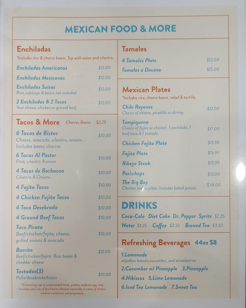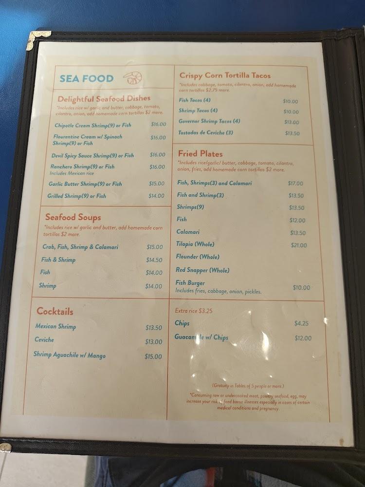 The menu at Mariscos Playa Azul Cafe features a diverse selection. Fresh seafood dishes dominate, including fried fish and shrimp. Authentic Mexican options like enchiladas and tamales catch attention as well.